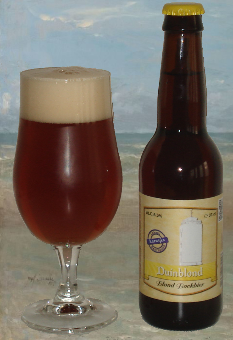 de Katwijks Duinblond, een blond bockbier. Gebrouwen met een vleugje caramelmout en twee beroemde hopsoorten uit de Duitse Hallertau.